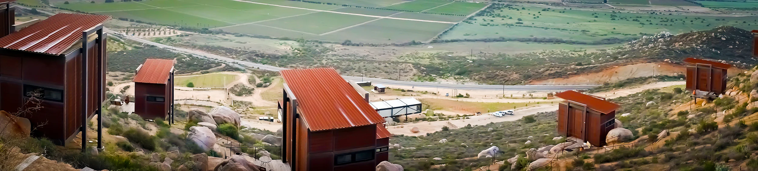 Located just a few miles northeast of Ensenada in beautiful Mexican wine country lies the rustically elegant Encuentro Guadalupe, with pod cabins constructed from the most basic building materials: corrugated metal roofing and wood siding - peaceful simplicity and only 20 minutes from the ocean and the best ceviche we've ever had.
